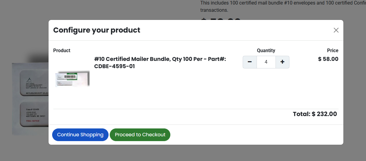 5. ) Each time you add an item to your cart, you’ll be given a confirmation and options to either Continue Shopping or Proceed to Checkout. When finished shopping, choose Proceed to Checkout.