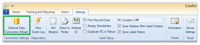 | 2) Select the Settings tab 3) Open the External Data Connection Wizard | ![]() |