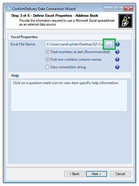 | 8) Select the “ … ” box and select the file that will be used 9) Click Next | ![]() |