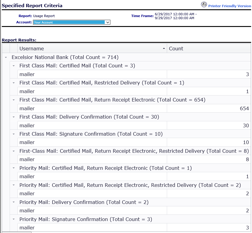 Usage ReportsUsage Reports display the types of mail that have been processed in a specified time period. | ![]() |
