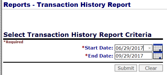 Transaction History ReportsAny account granted the permission to do so may view Transaction History Reports. | ![]() |