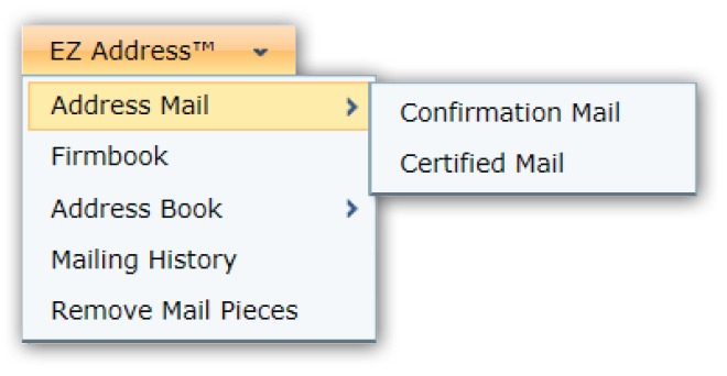 2) In the drop-down menu, go from "Address Mail" to either the "Confirmation Mail" tab or the "Certified Mail" tab. | ![]() |