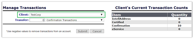 Once transactions are received from a provider, they need to be distributed amongst client and user accounts. Both the adding and removing of transactions are handled through the Transaction Management page.